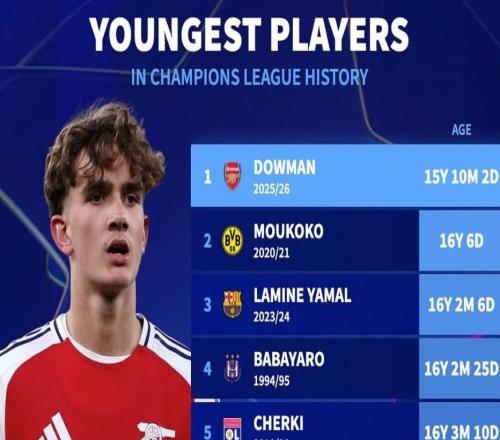 欧冠最年轻出场前10:道曼、穆科科、亚马尔前3,谢尔基第5